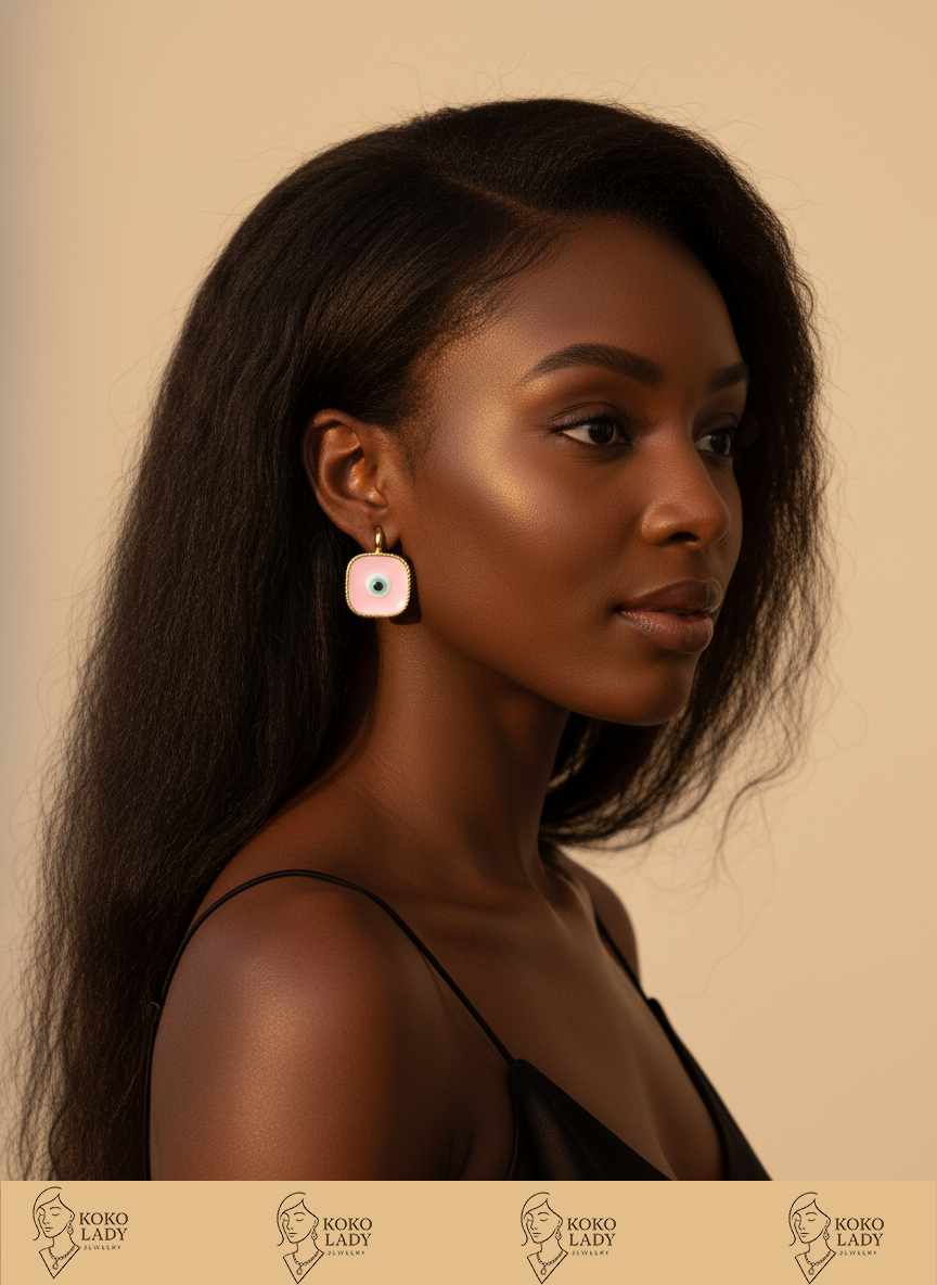 Add a touch of charm and protection with our Blush Aura Earrings. Featuring a soft pink enamel backdrop accented by a classic blue evil eye, these gold-framed beauties blend modern elegance with ancient symbolism. Perfect for everyday wear or special occasions, they’re designed to bring both style and positive energy to your look.